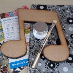 1 x 20cm double note shape (MDF), 1 full sheet of decopatch paper, 1 decopatch brush and a small pot of decopatch glue.